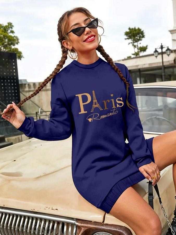 AnasayfaTüm ÜrünlerElbiseUzun Kollu Bisiklet Yaka Yazılı Kısa Viskon Iki Iplik Elbise
