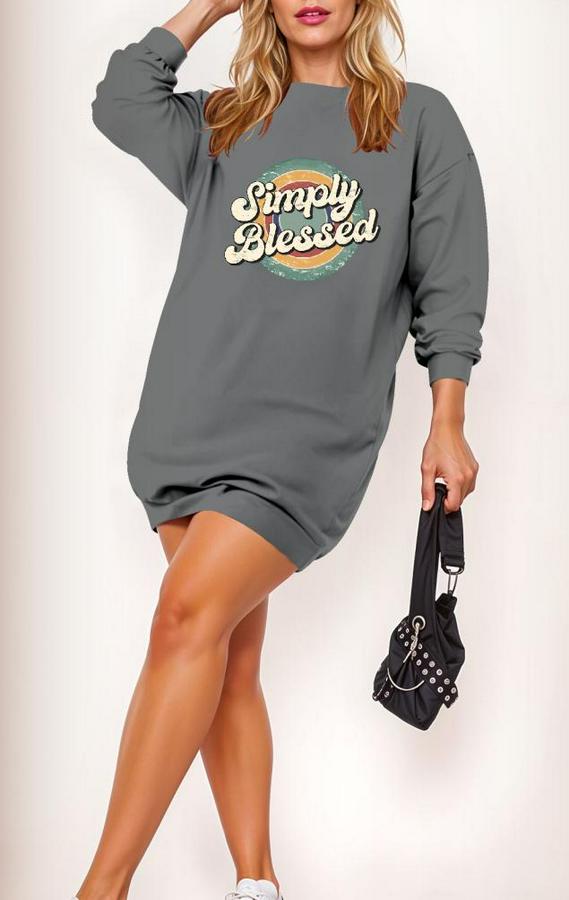AnasayfaTüm ÜrünlerElbiseUzun Kollu Bisiklet Yaka Yazılı Viskon Iki Iplik Elbise