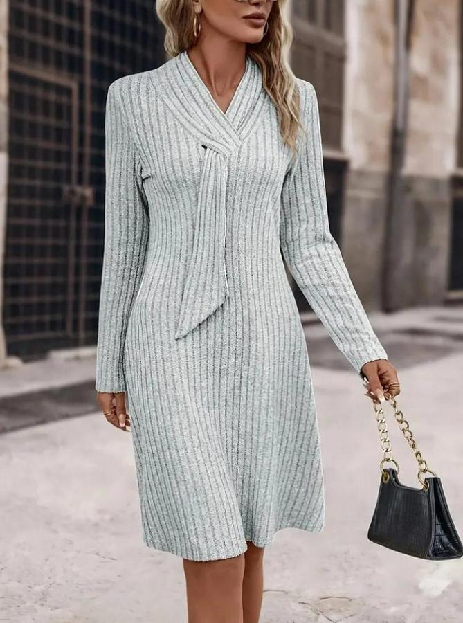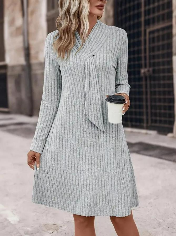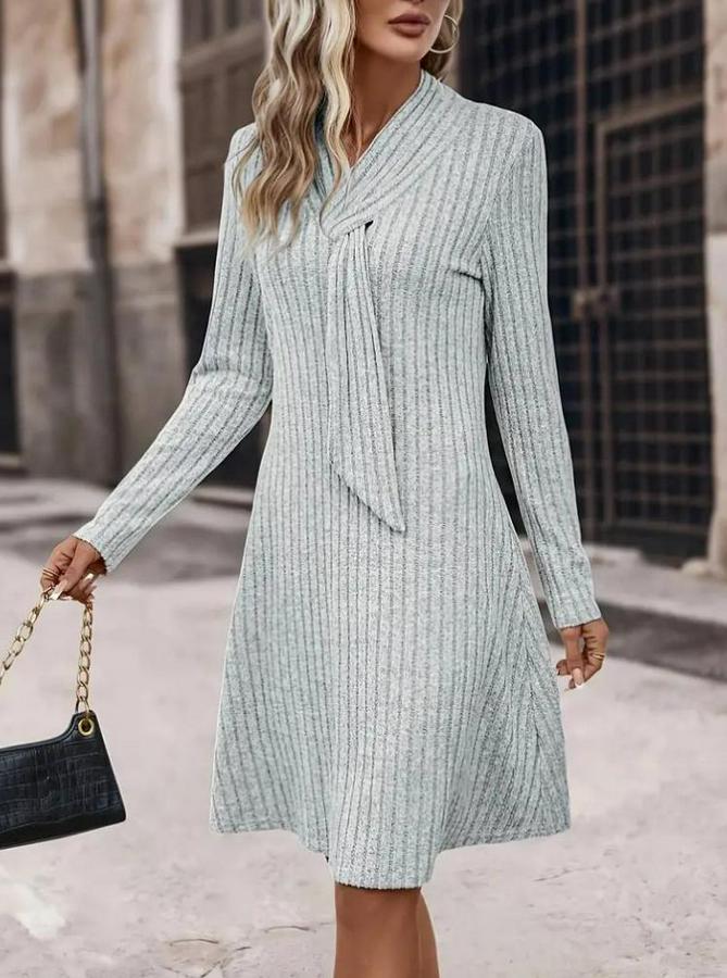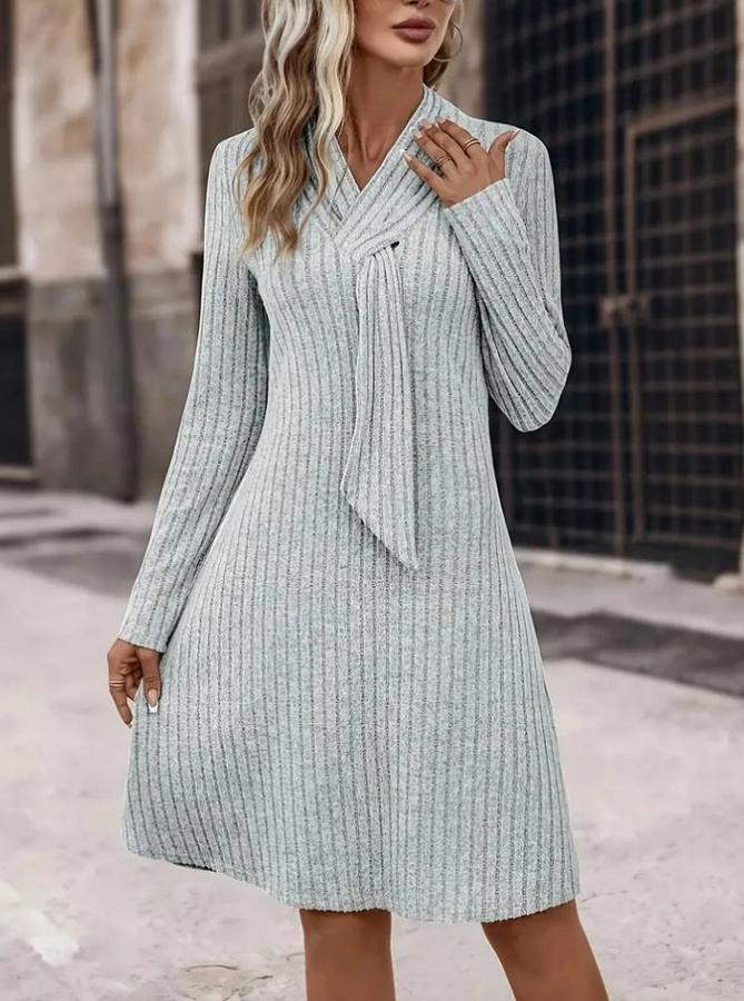 Kadın Uzun Kollu çapraz Geçmeli Kravat Yaka şardonlu Kaşkorse Kısa Elbise