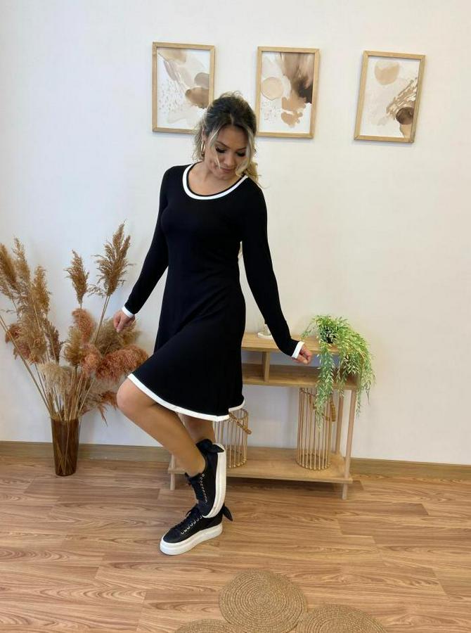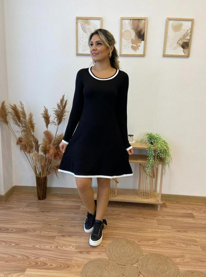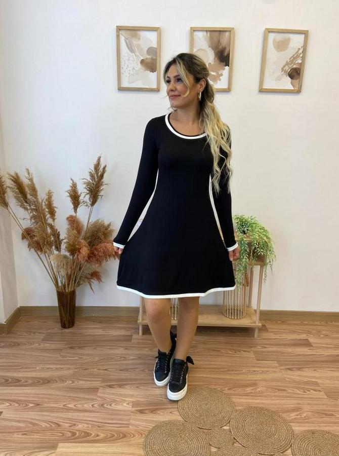 Kadın Uzun Kollu Derin Yuvarlak Yakalı Kısa Viskon Iki Iplik Elbise