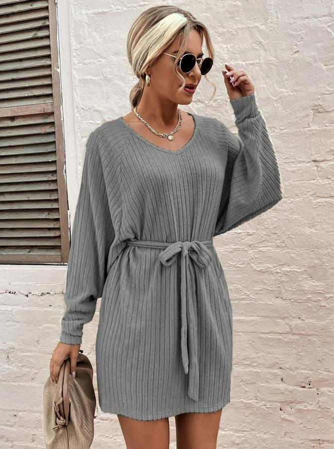 Kadın Uzun Kollu Fitilli şardonlu Detay Buklet Kuşaklı Yumoş Elbise