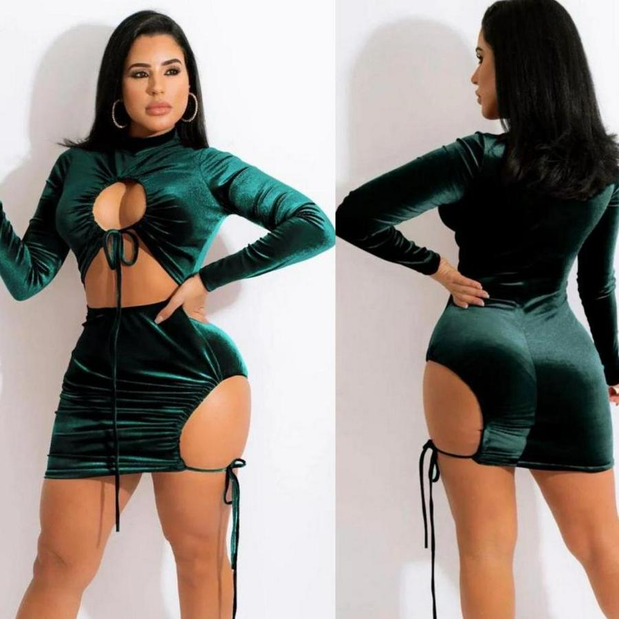 AnasayfaTüm ÜrünlerElbiseUzun Kollu Full Dekolte Detay Kadife Kumaş Elbise