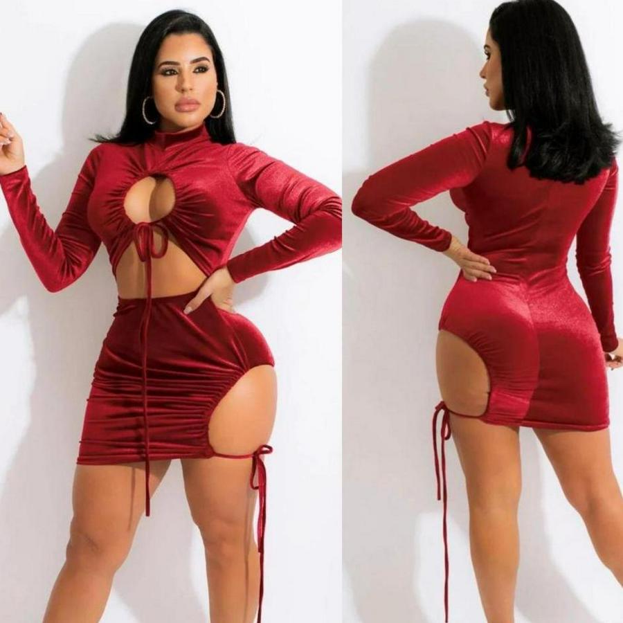 AnasayfaTüm ÜrünlerElbiseUzun Kollu Full Dekolte Detay Kadife Kumaş Elbise