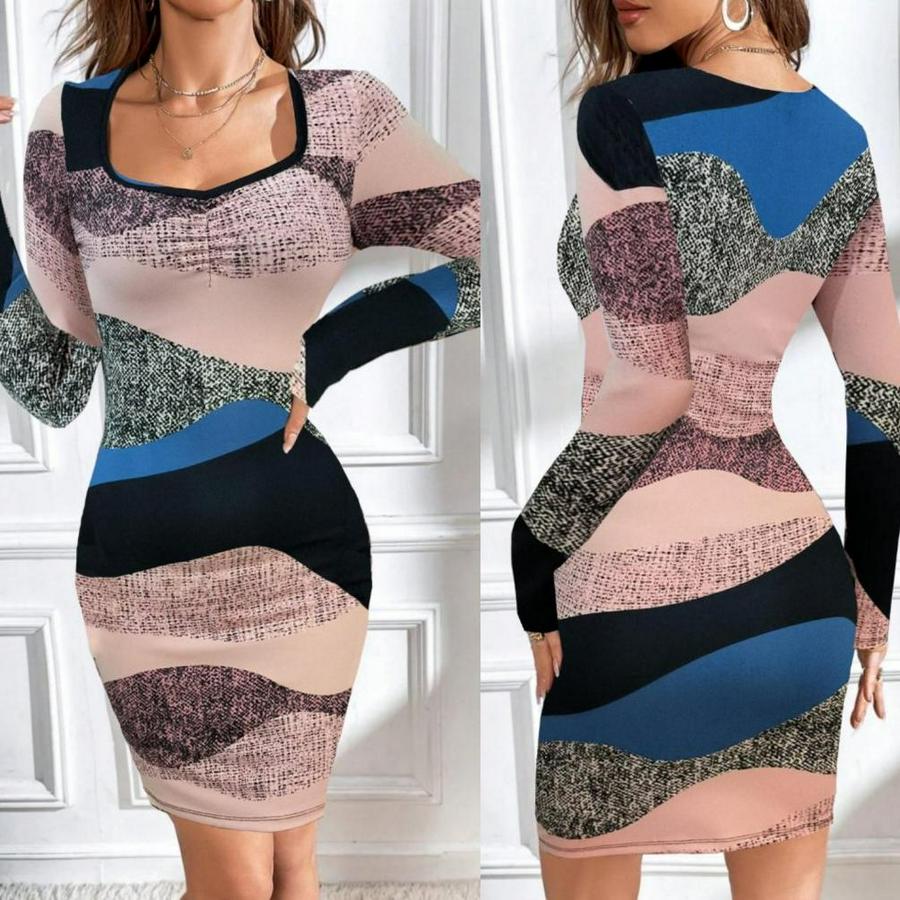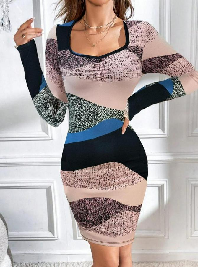 Kadın Uzun Kollu Göğüs Dekolte Detay Dalgıç Mini Elbise
