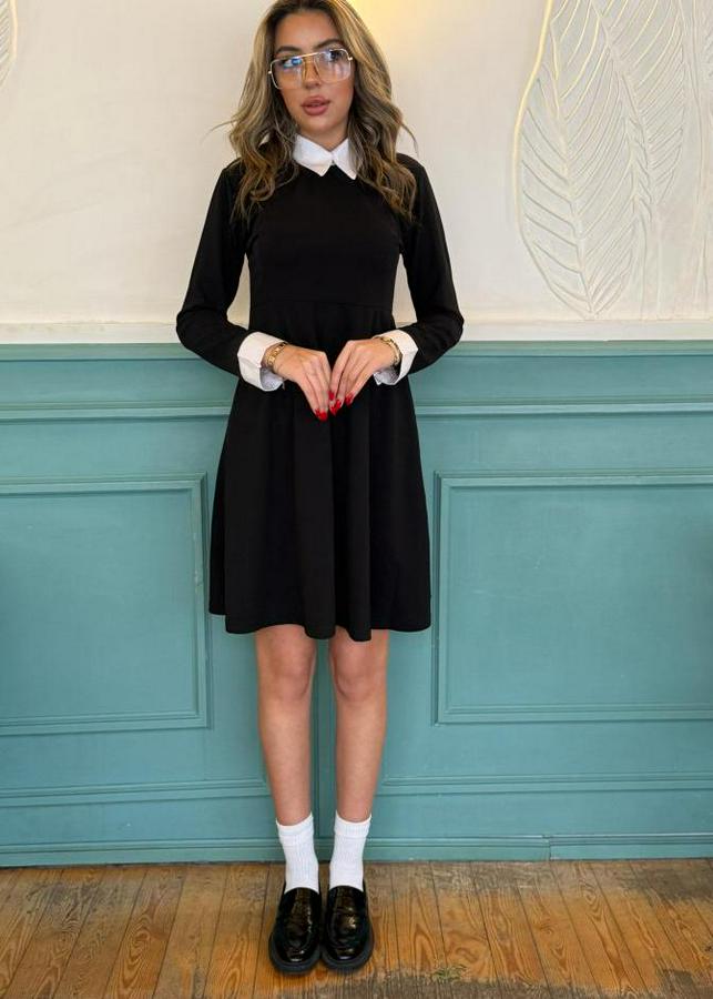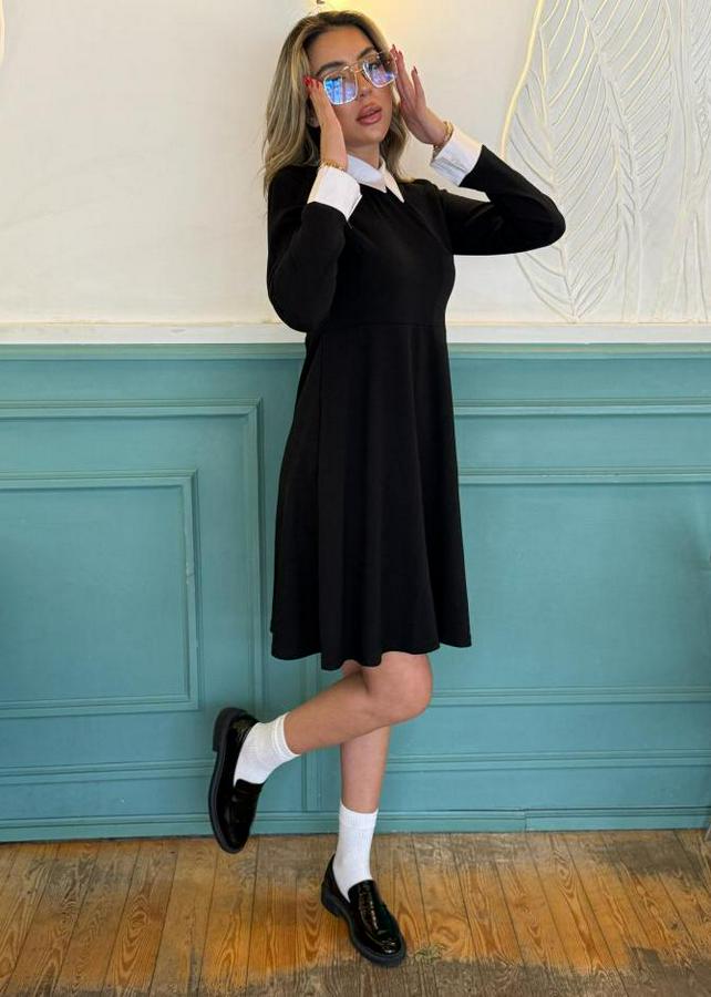 Uzun Kollu Gömlek Yaka Krep Kumaş Elbise