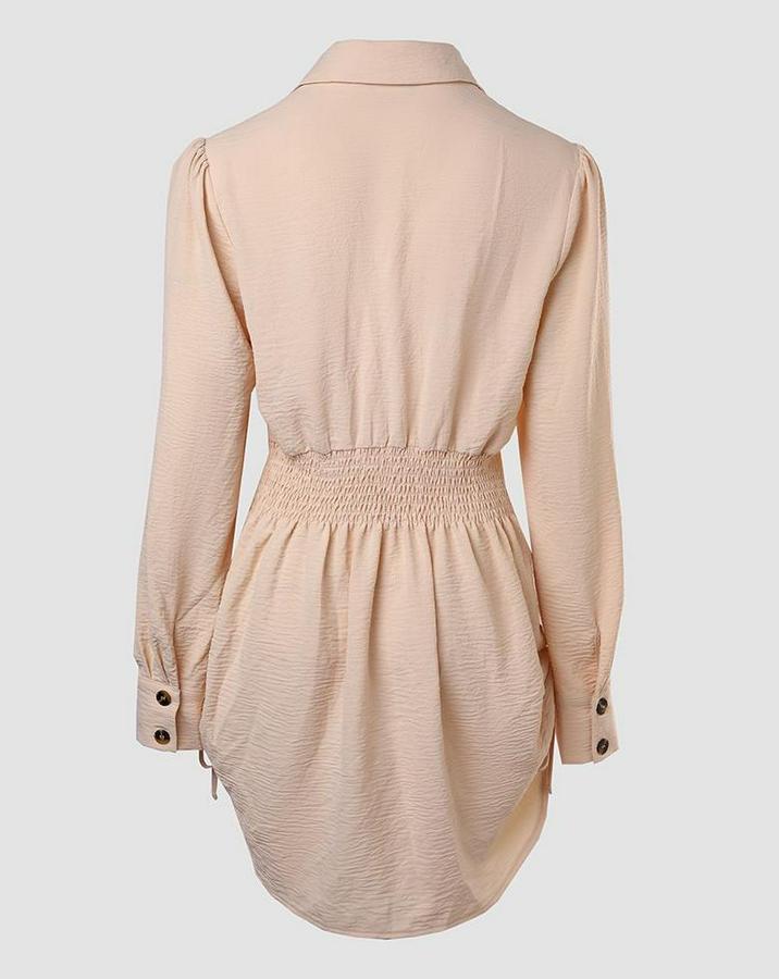 Kadın Uzun Kollu Gömlek Yaka önden Düğmeli Yanlardan Büzgülü Kısa Aerobin Elbise