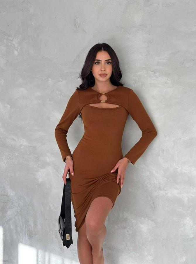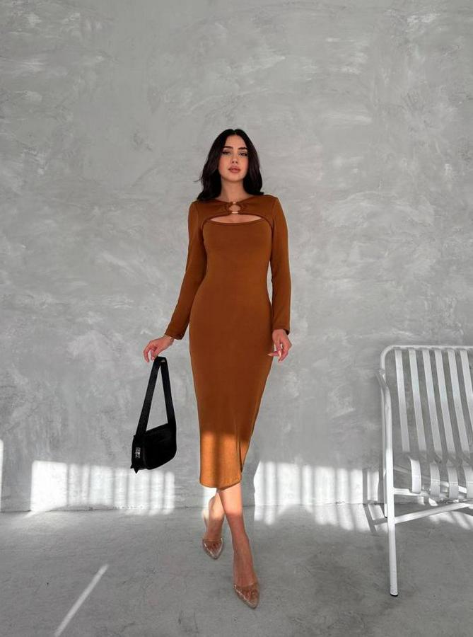 Kadın Uzun Kollu Halka Ve Pencere Dekolte Detay Fırsat ürün Midi Boy Elbise