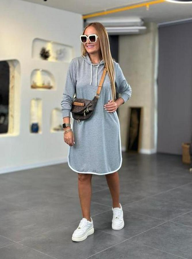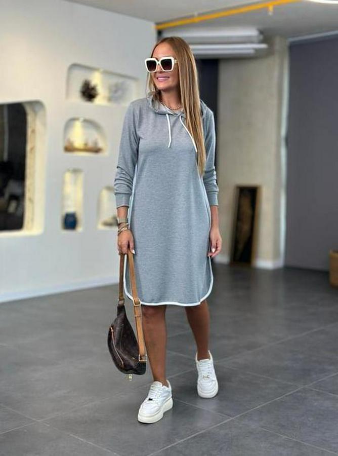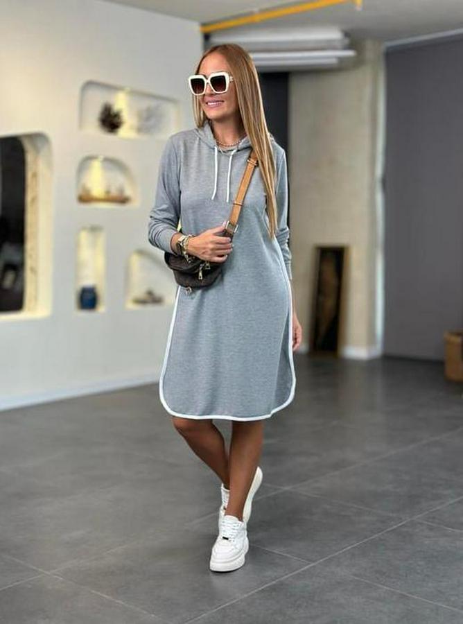 AnasayfaTüm ÜrünlerElbiseUzun Kollu Kapüşon Ve Ribana Detay Diz Üstü Elbise