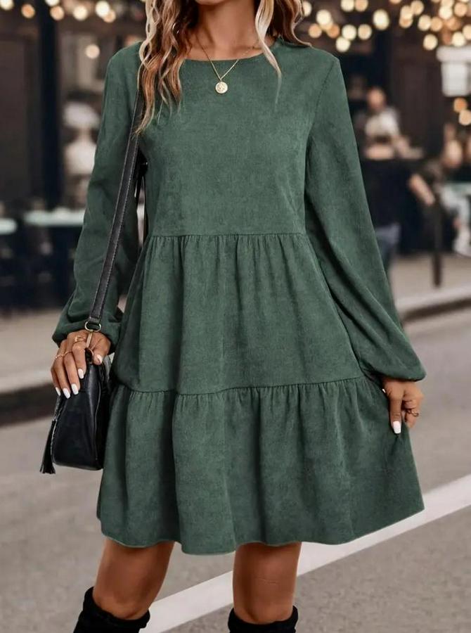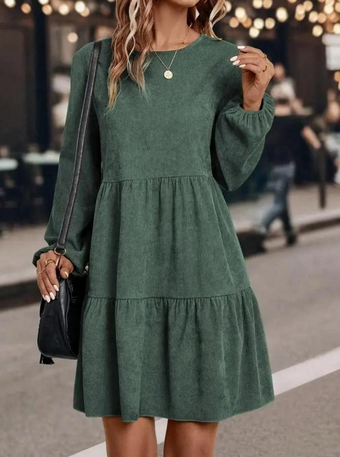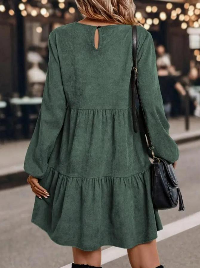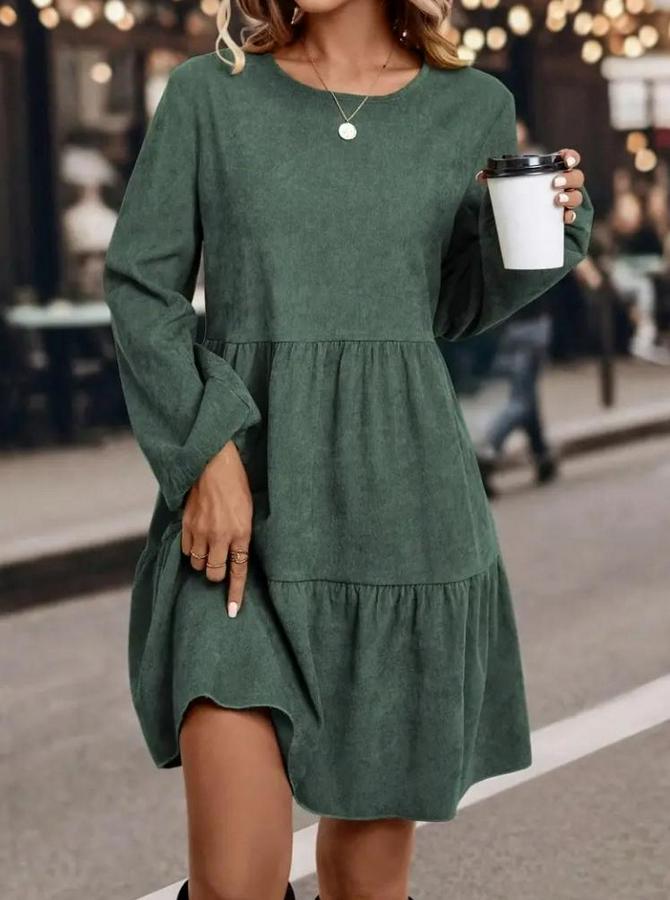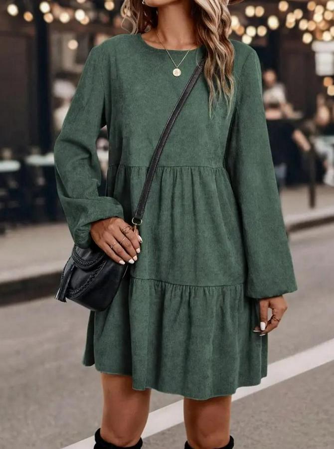 Kadın Uzun Kollu Kol Ucu Lastikli Süet Mini Boy Elbise