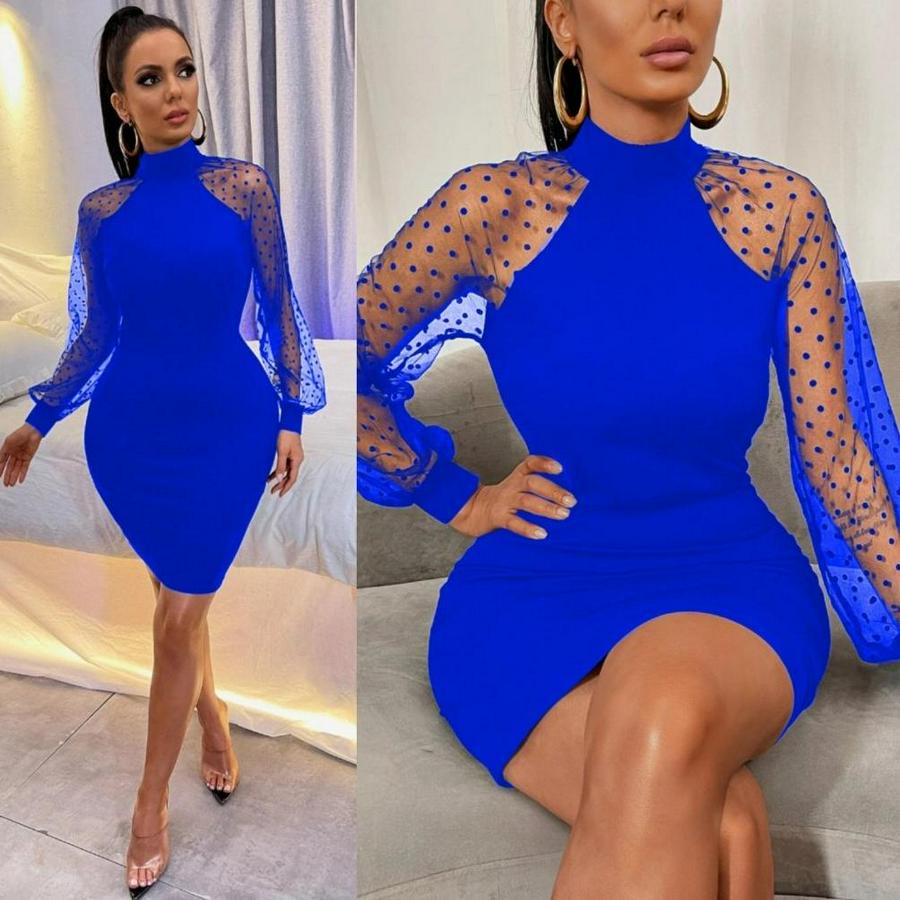 Kadın Uzun Kollu Kollar Tül Puantiye Detay Dalgıç Mini Boy Elbise