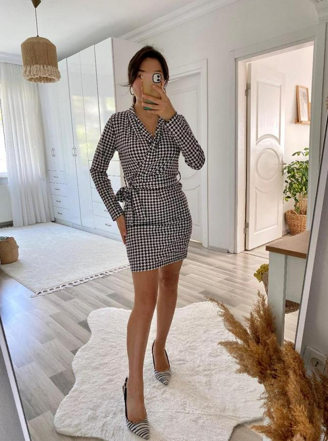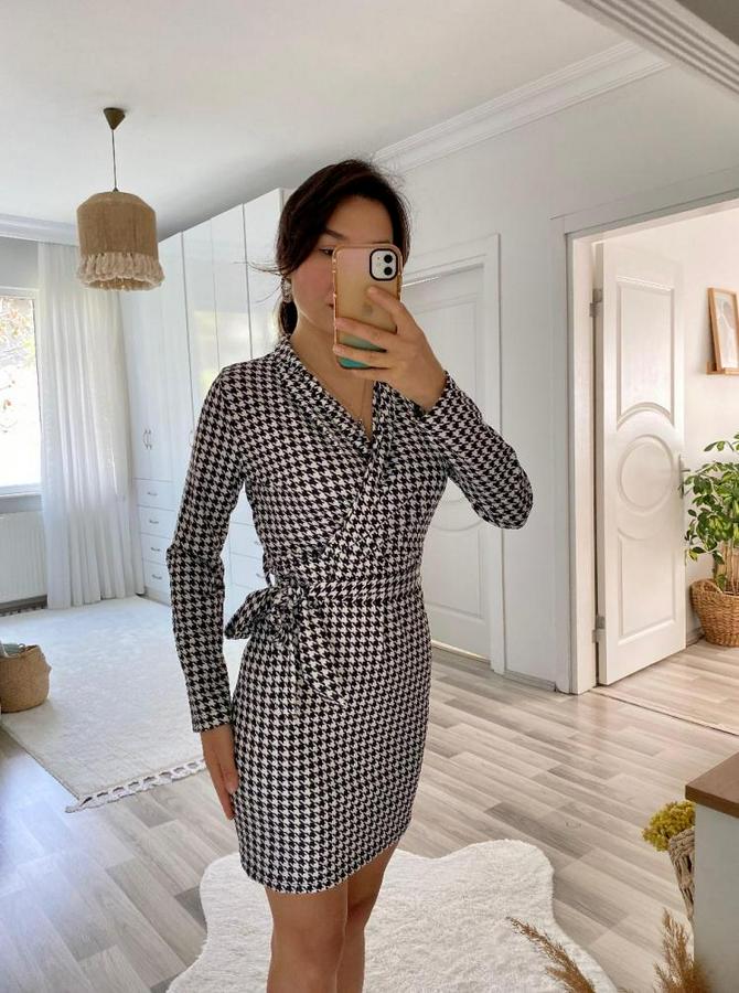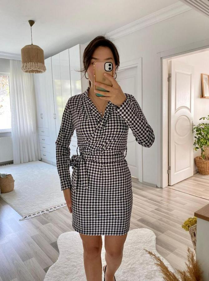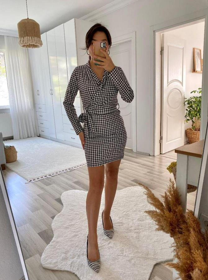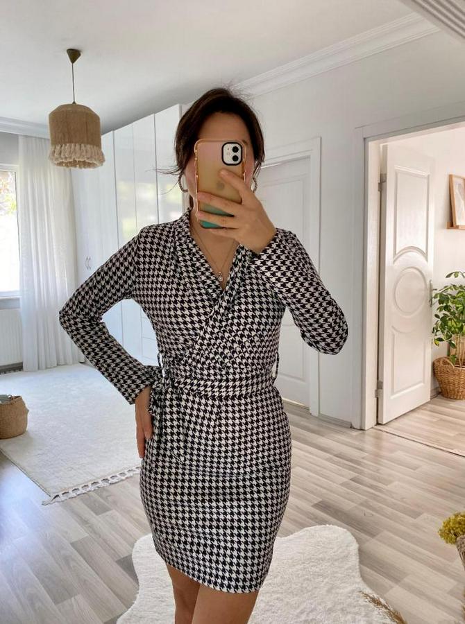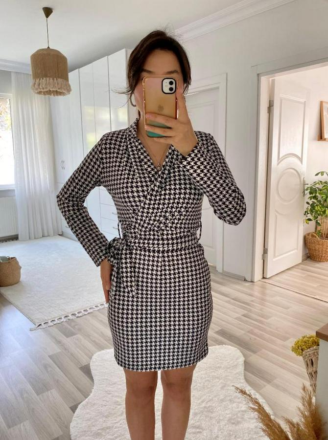AnasayfaTüm ÜrünlerElbiseUzun Kollu Kruvaze Yaka Bağlamalı Kemer Dalgıç Mini Boy Elbise