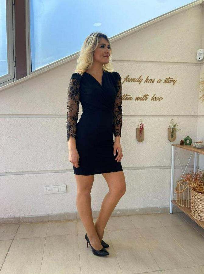AnasayfaTüm ÜrünlerElbiseUzun Kollu Kruvaze Yaka Kollar Tül Detay Krep Mini Boy Elbise