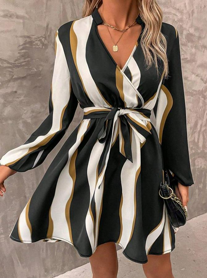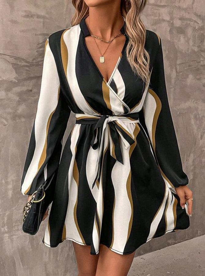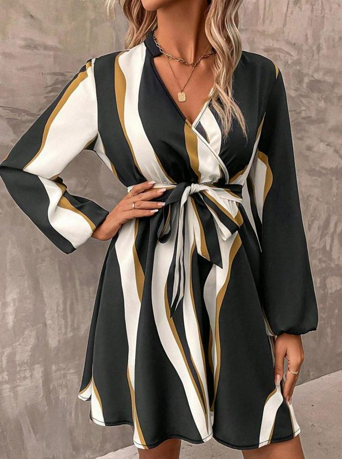 AnasayfaTüm KategorilerGiyimElbiseUzun Kollu Kruvaze Yakalı Desenli Modal Mini Elbise