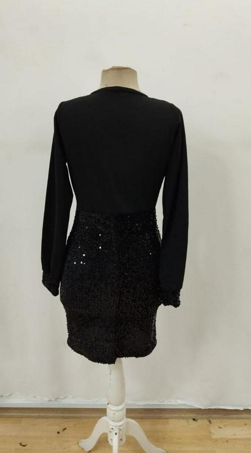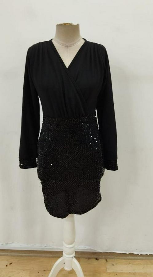 AnasayfaTüm ÜrünlerElbiseUzun Kollu Kruvaze Yakalı Üst Ithal Krep Alt Pulpayetli Mini Ithal Krep Elbise