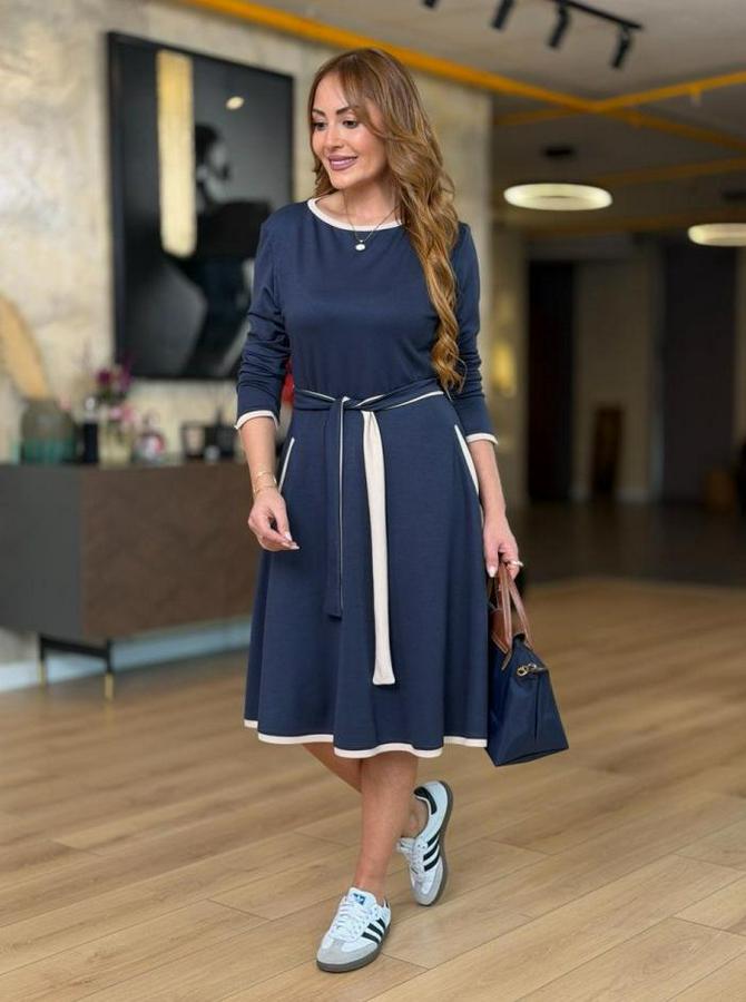 Kadın Uzun Kollu Kuşak Dahil Midi Boy Lbise