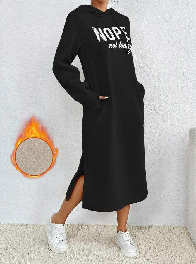 Kadın Uzun Kollu Nope Yazılı Kapüşonlu Yırmaç Detay Midi Boy Elbise