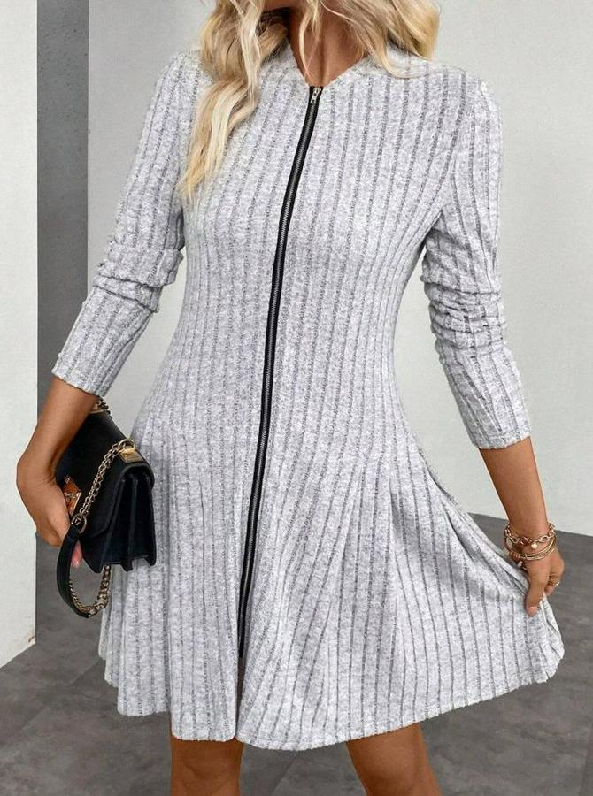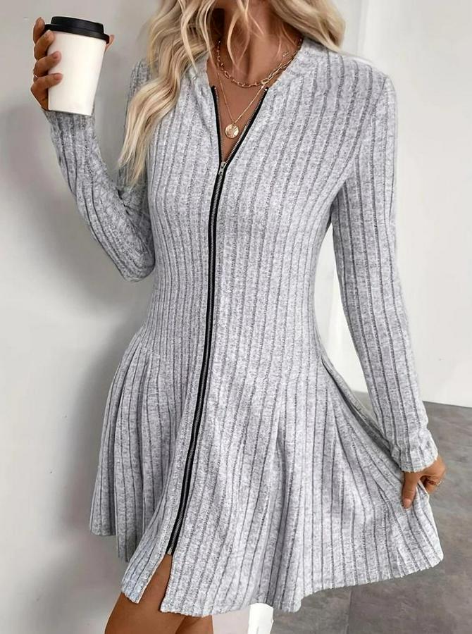 Kadın Uzun Kollu önden Fermuarlı Pileli şardonlu Kaşkorse Mini Elbise