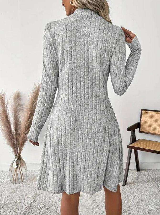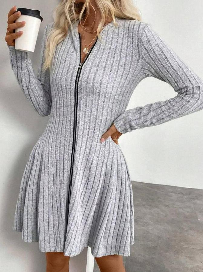 AnasayfaTüm ÜrünlerElbiseUzun Kollu Önden Fermuarlı Pileli Şardonlu Kaşkorse Mini Elbise