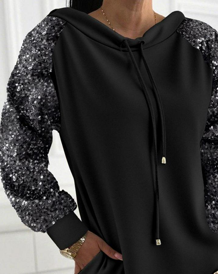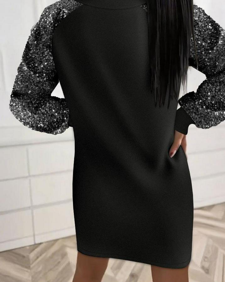 Kadın Uzun Kollu Pulpayetli Bağcıklı Cep Detaylı Mini Viskon Iki Iplik Elbise