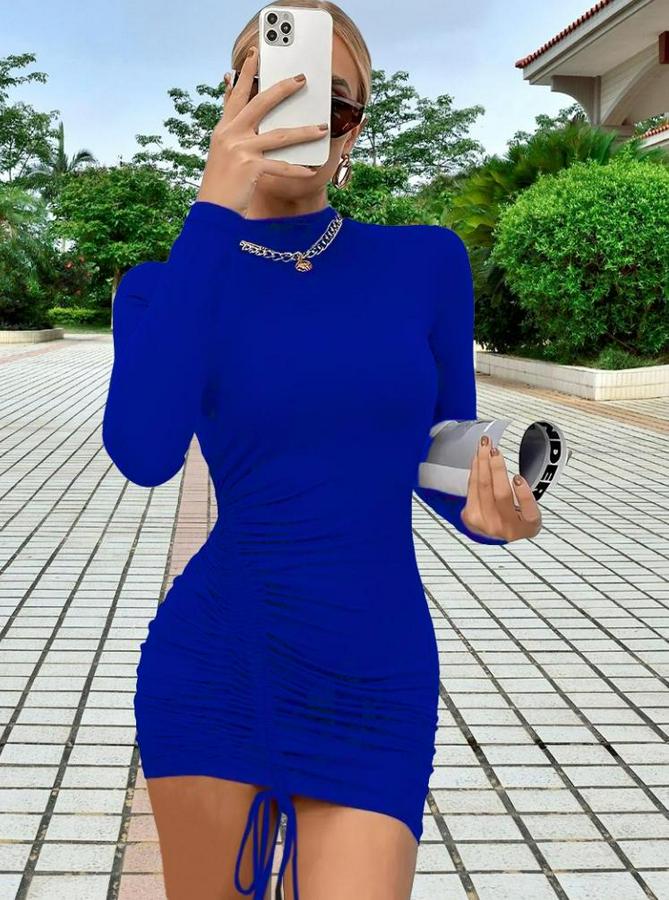 Kadın Uzun Kollu Sağ Belden Sol Etek Ucuna Doğru Hafif çapraz Büzgülü Sandy Mini Boy Elbise
