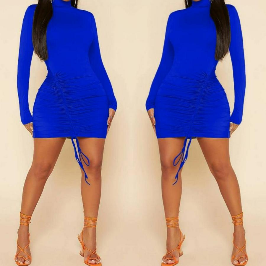 Kadın Uzun Kollu Sağ Belden Sol Etek Ucuna Doğru Hafif çapraz Büzgülü Sandy Mini Boy Elbise
