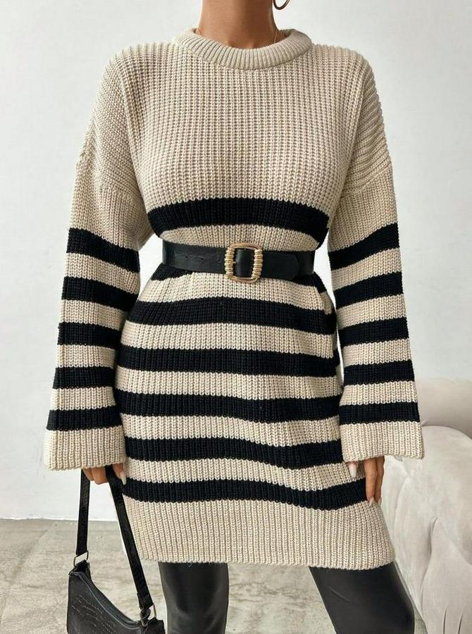 Kadın Uzun Kollu şerit Detay Triko Elbise Kemer Hariç
