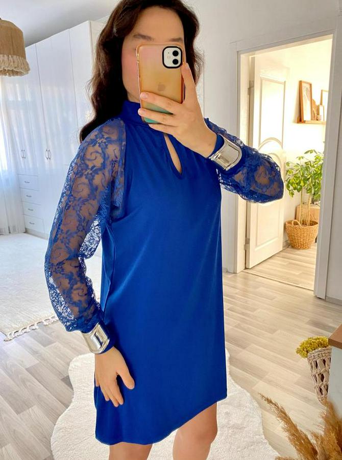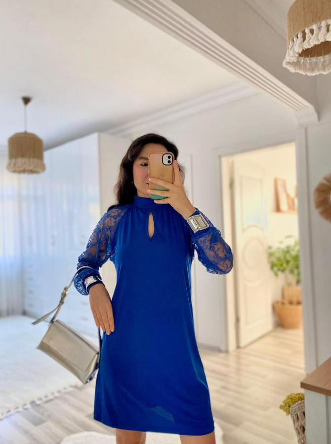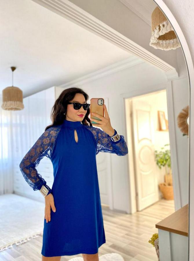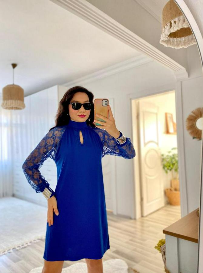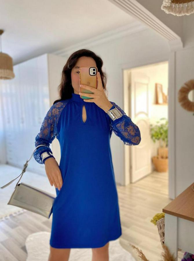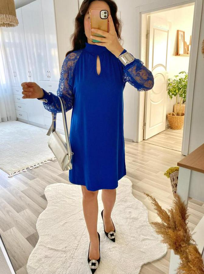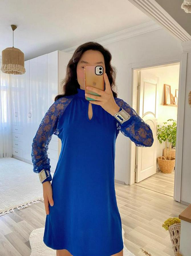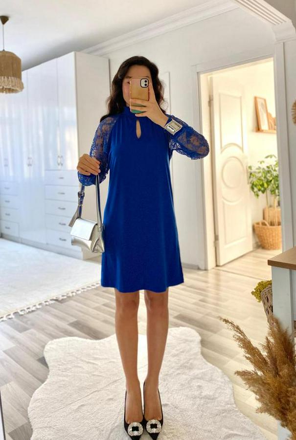 Uzun Kollu Tül Detay Sandy Mini Boy Elbise