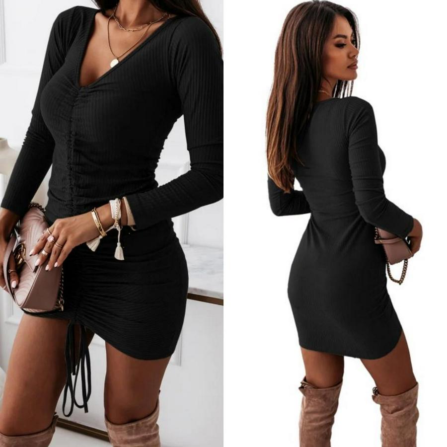 AnasayfaTüm ÜrünlerElbiseUzun Kollu V Yaka Büzgülü Kaşkorse Elbise