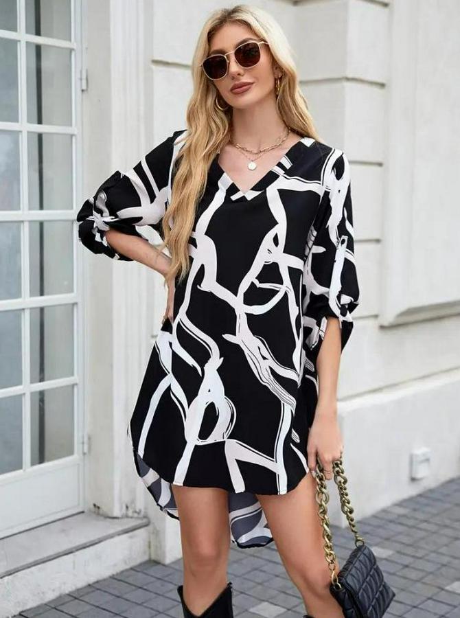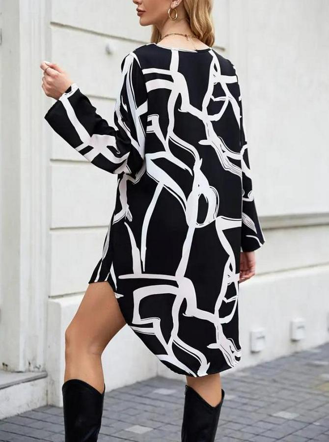 AnasayfaTüm ÜrünlerElbiseUzun Kollu V Yakalı Desenli Dalgıç Elbise