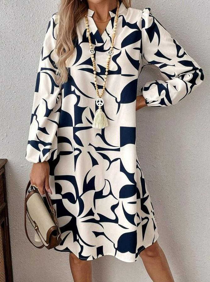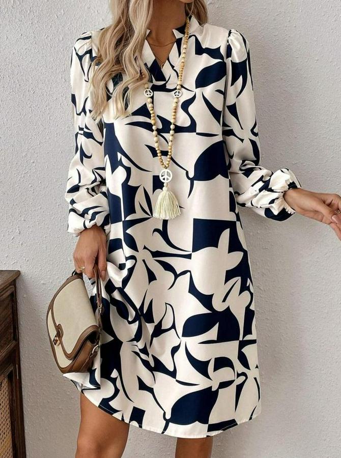 Kadın Uzun Kollu V Yakalı Desenli Modal Mini Elbise