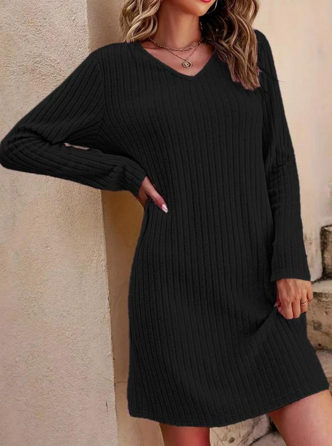 Kadın Uzun Kollu V Yakalı Kısa şardonlu Kaşkorse Elbise