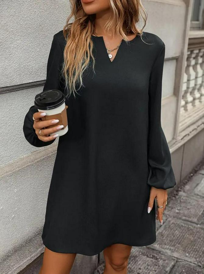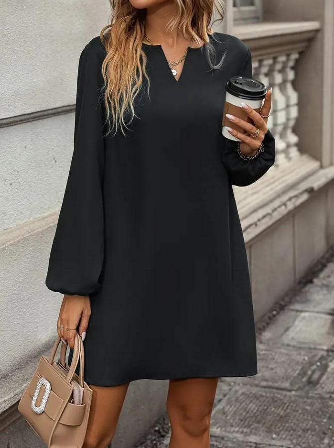 Kadın Uzun Kollu V Yakalı Salaş Ithal Krep Elbise