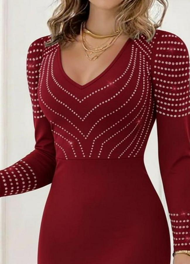 Kadın Uzun Kollu V Yakalı Taşlı Mini Ithal Krep Elbise