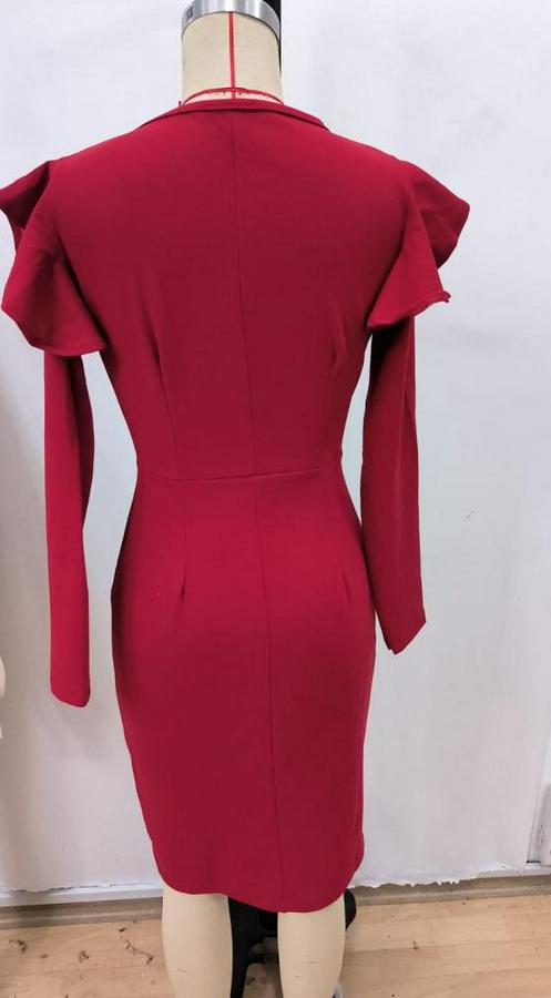 AnasayfaTüm ÜrünlerElbiseUzun Kollu V Yakalı Yandan Yırtmaçlı Midi Ithal Krep Elbise
