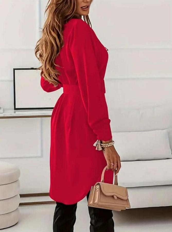Kadın Uzun Kollu Yakalı Belden Kemerli Kıs Ithal Krep Elbise