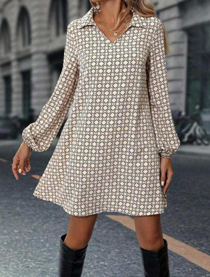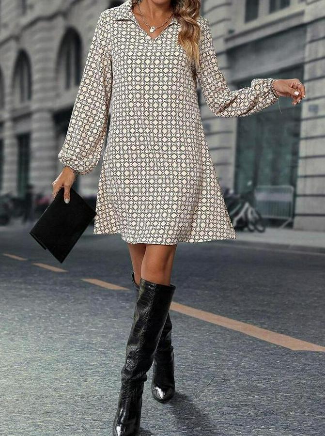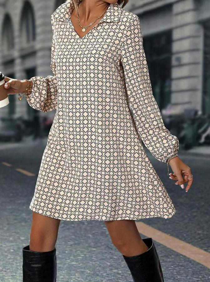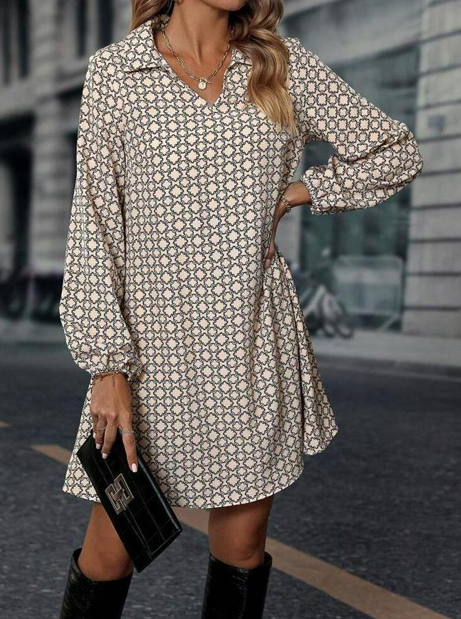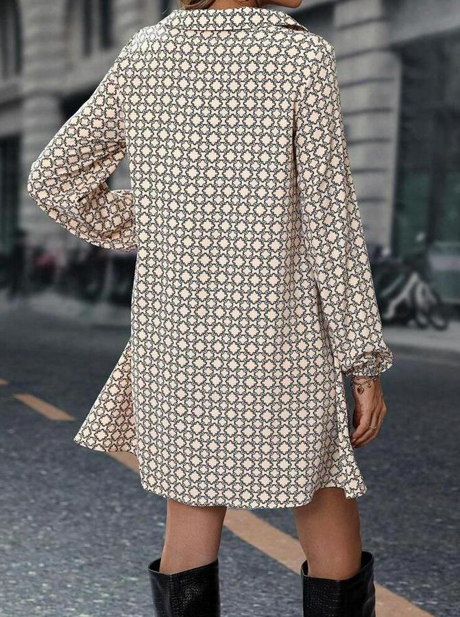 AnasayfaTüm ÜrünlerElbiseUzun Kollu Yakalı Desenli Mini Modal Elbise
