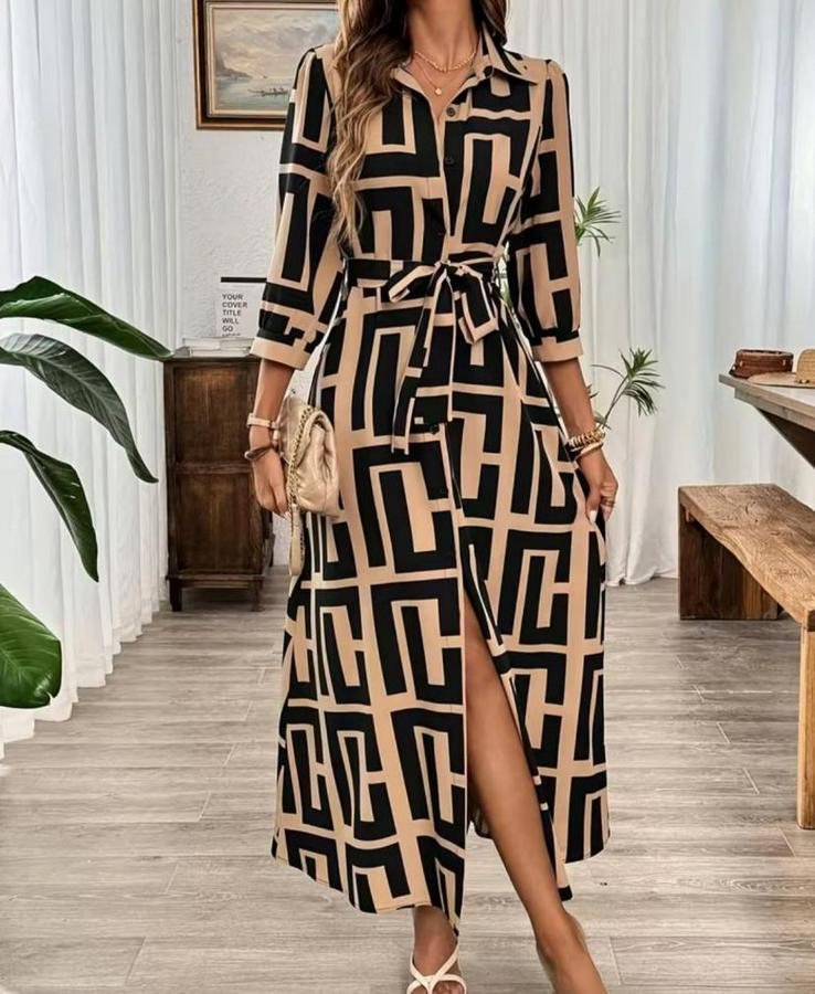 Kadın Uzun Kollu Yakalı önden Düğmeli Uzun Süprem Elbise
