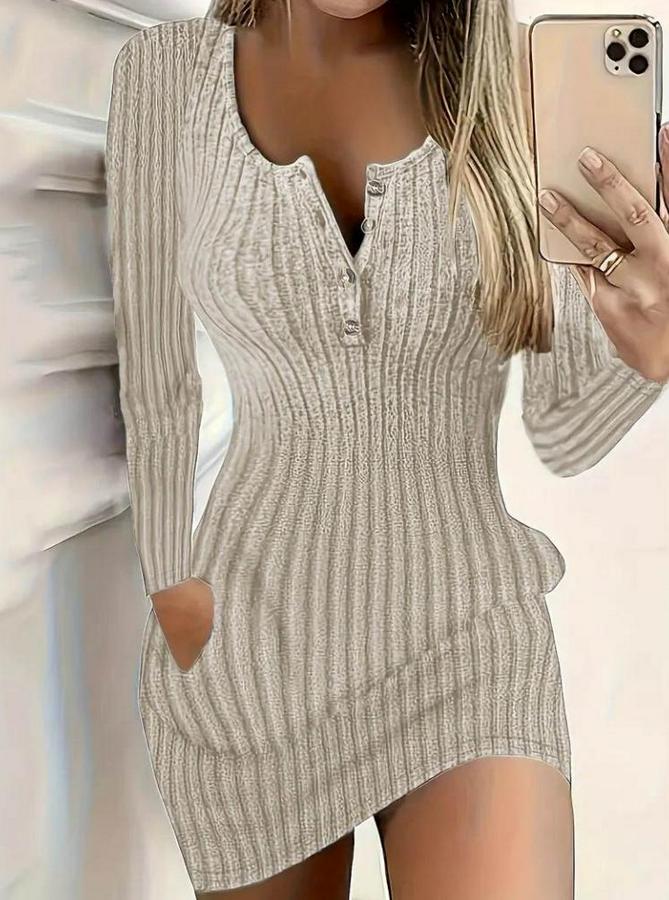 Kadın Uzun Kollu Yakası Açık Düğme Ve Cep Detaylı Kısa şardonlu Kaşkorse Elbise