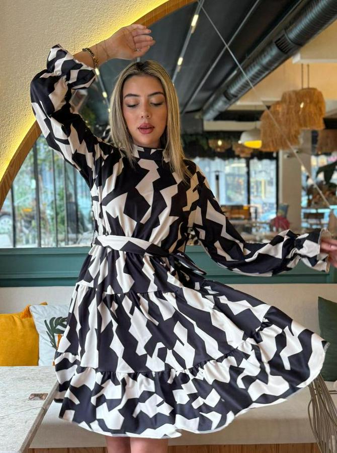 AnasayfaTüm ÜrünlerElbiseUzun Kollu Yarı Balıkçı Yaka Geometrik Desen Kısa Şardonlu Dalgıç Elbise