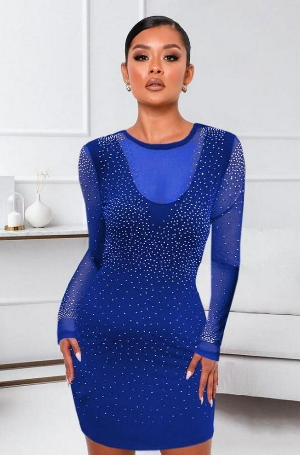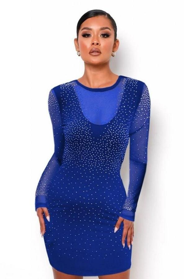AnasayfaTüm ÜrünlerElbiseUzun Kollu Yuvarlak Yaka Dekolteli Taşlı Dalgıç Elbise