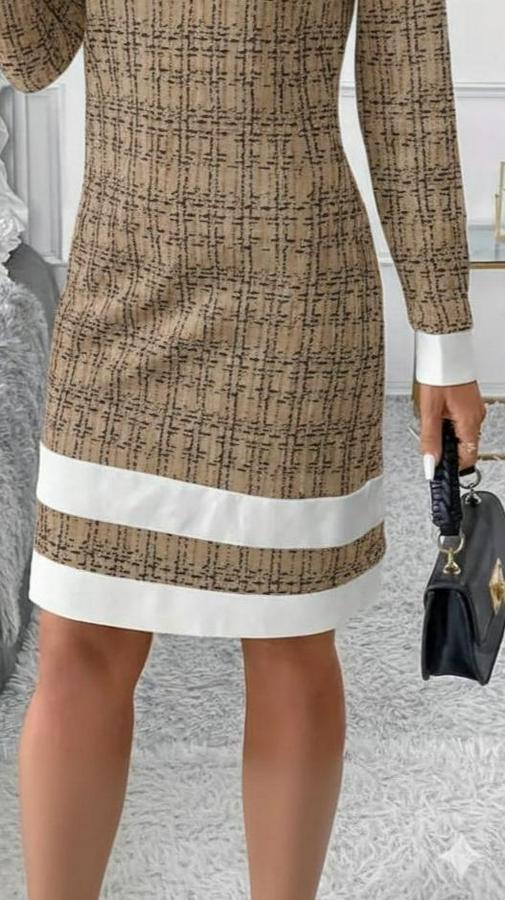 AnasayfaTüm ÜrünlerElbiseUzun Kollu Yuvarlak Yaka Etek Ucu Şerit Detaylı Mini Dokuma Elbise