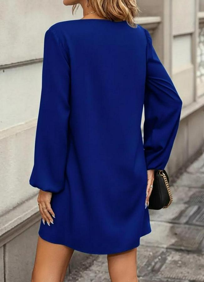 Kadın Uzun Kollu Yuvarlak Yaka Mini Ithal Krep Elbise