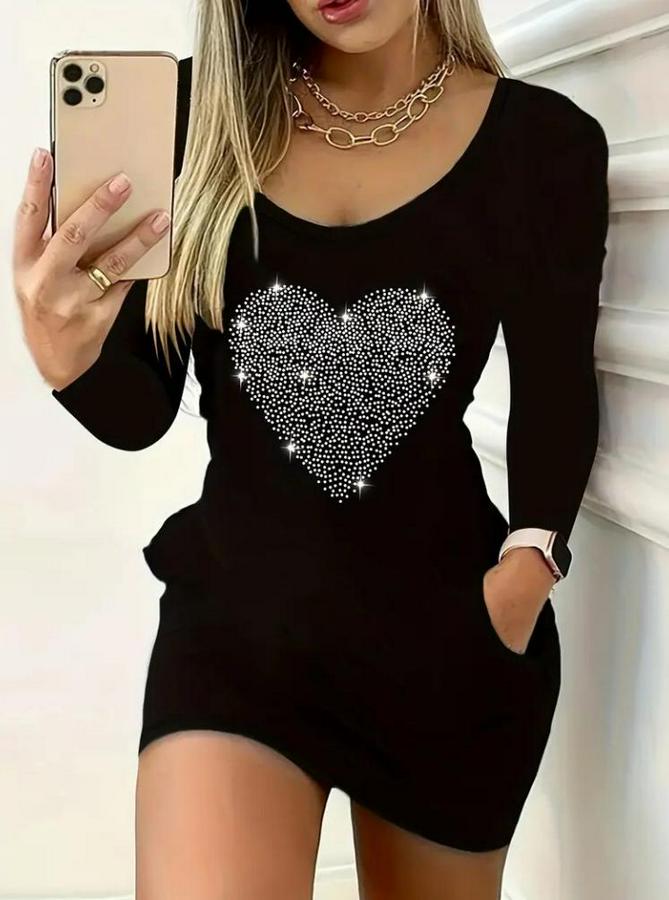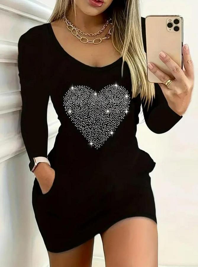 AnasayfaTüm ÜrünlerElbiseUzun Kollu Yuvarlak Yaka Taşlı Kalp Desenli Viskon Iki Iplik Elbise