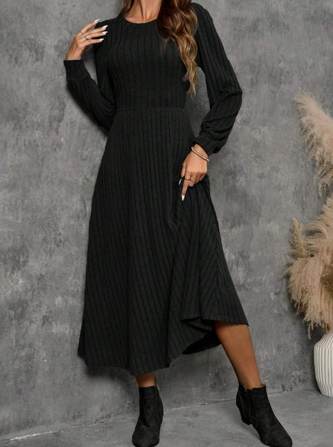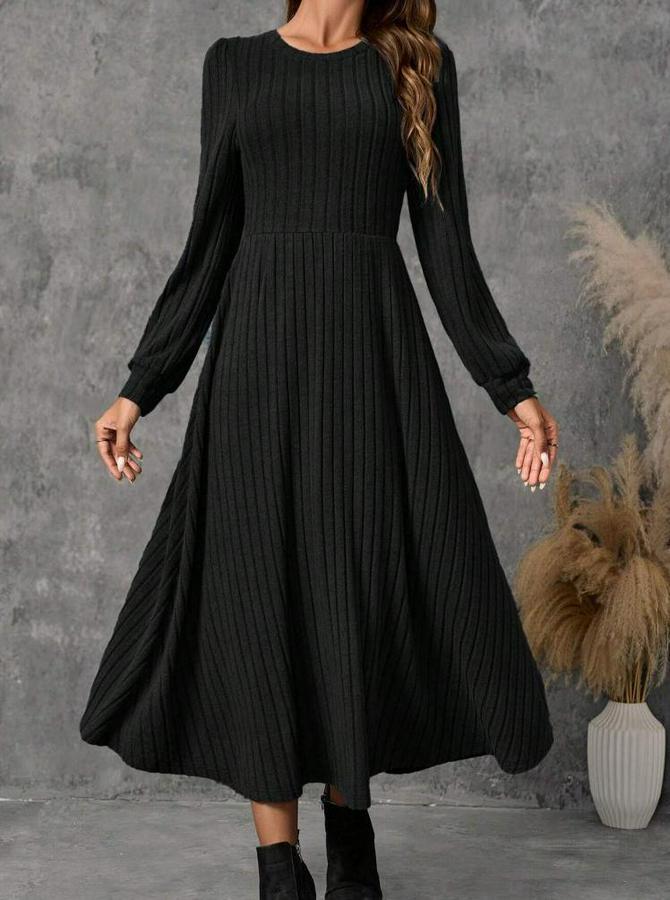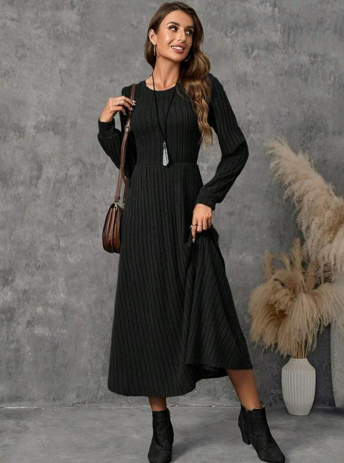 Kadın Uzun Kollu Yuvarlak Yakalı Kiloş Uzun şardonlu Kaşkorse Elbise