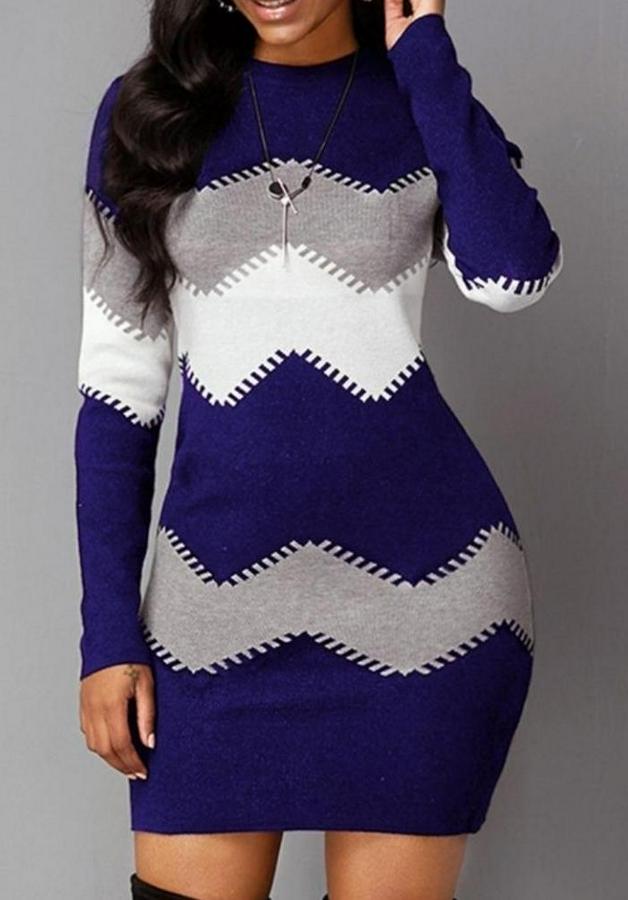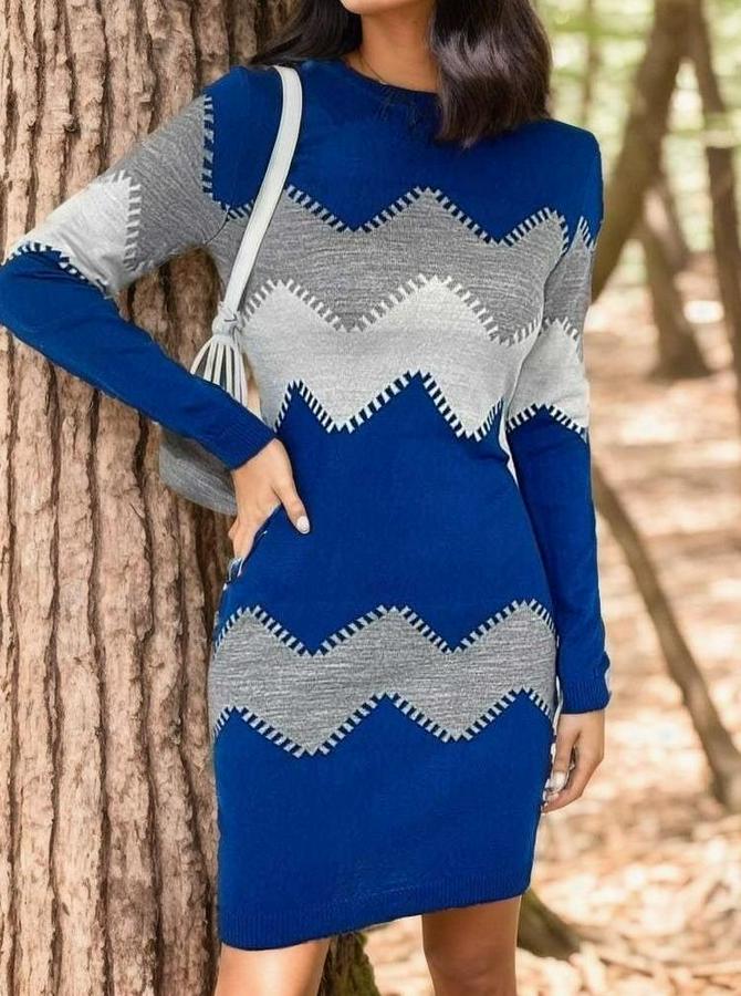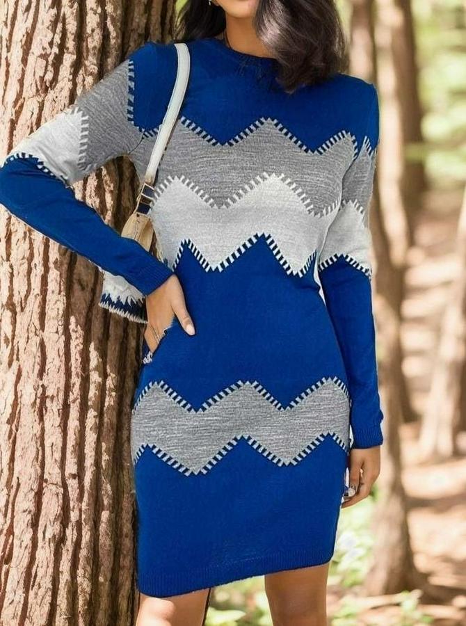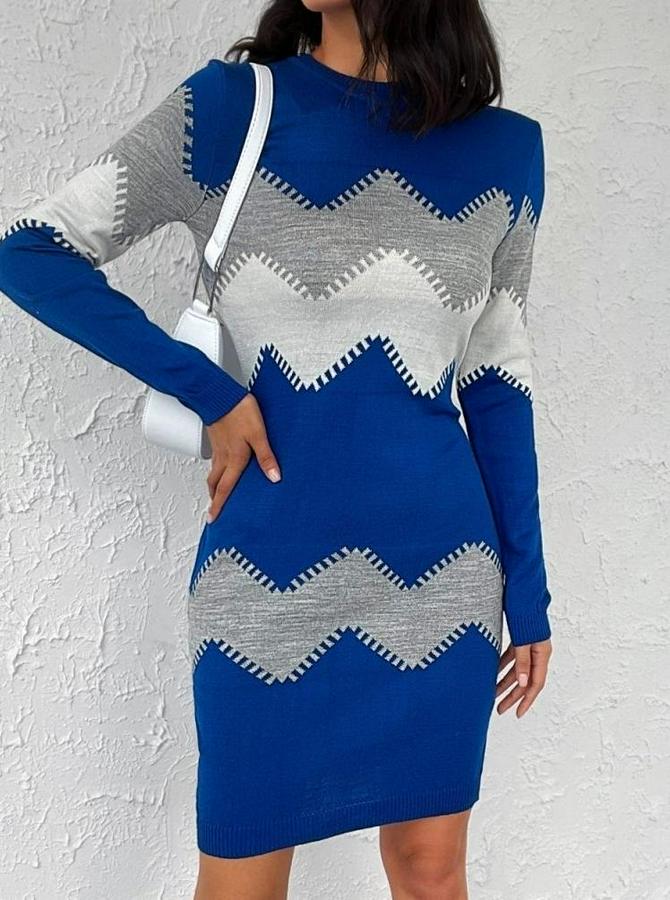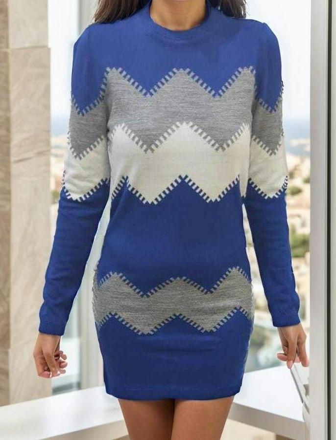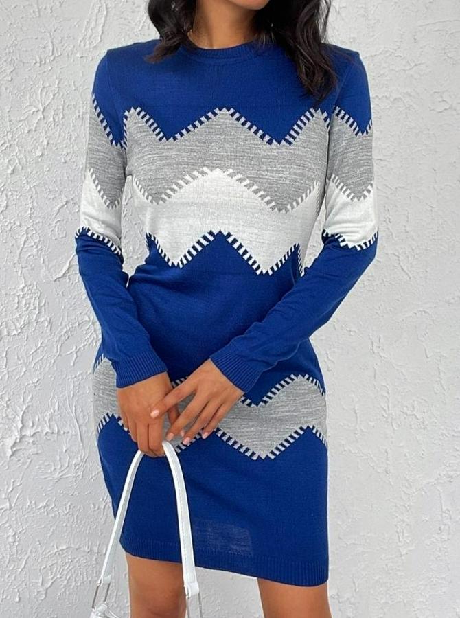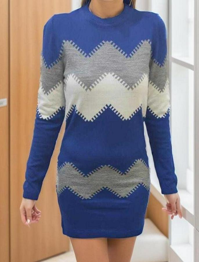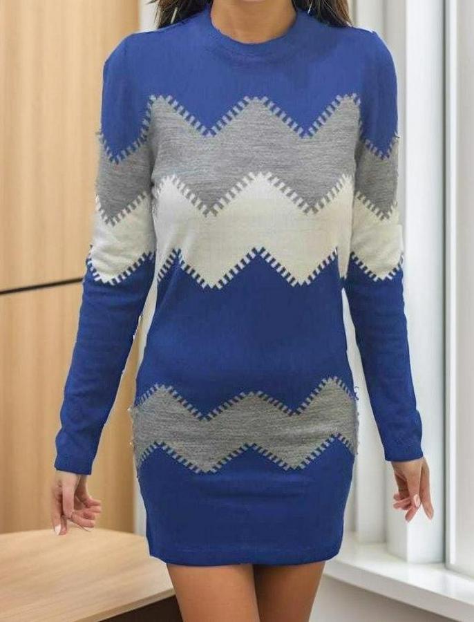 Uzun Kollu Zigzag Desen Triko Elbise