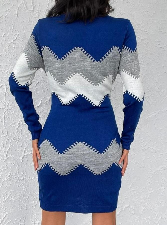 Kadın Uzun Kollu Zigzag Desen Triko Elbise