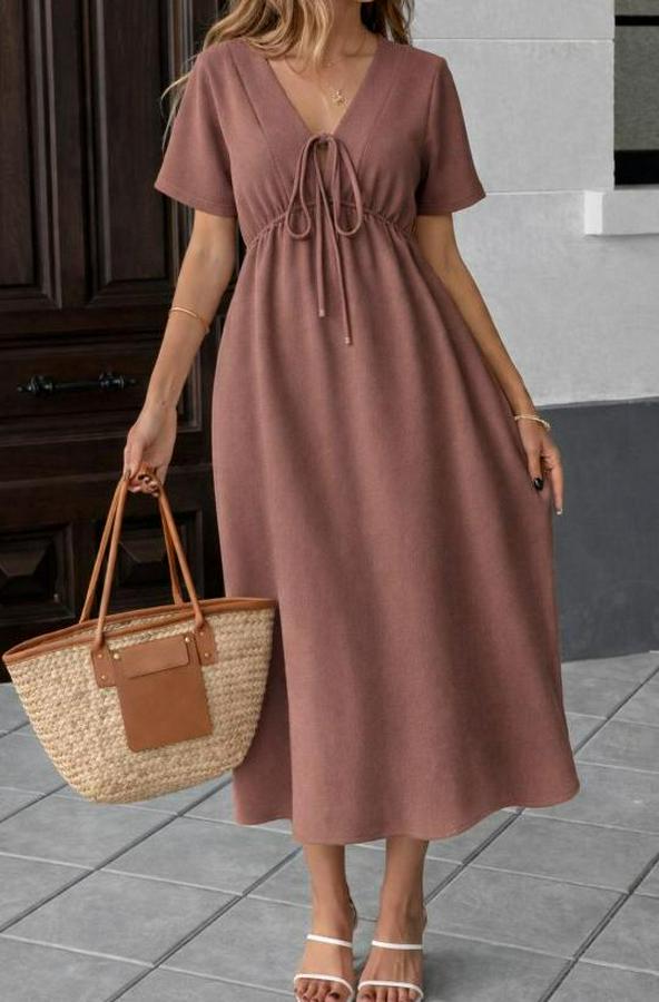 AnasayfaTüm ÜrünlerElbiseV Yaka Büzgülü Ip Detay Aerobin Kumaş Elbise