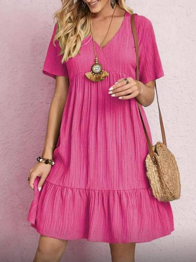 V Yaka, Fırfırlı Bürümcük Kumaş Elbise