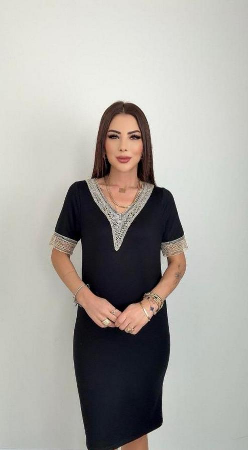 AnasayfaTüm ÜrünlerElbiseV Yaka Güpürlü Iki Iplik Elbise