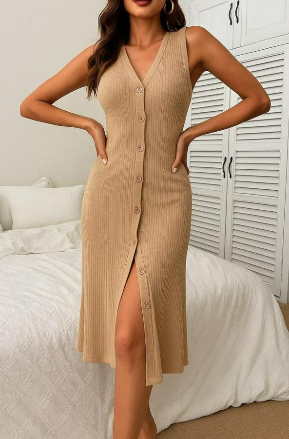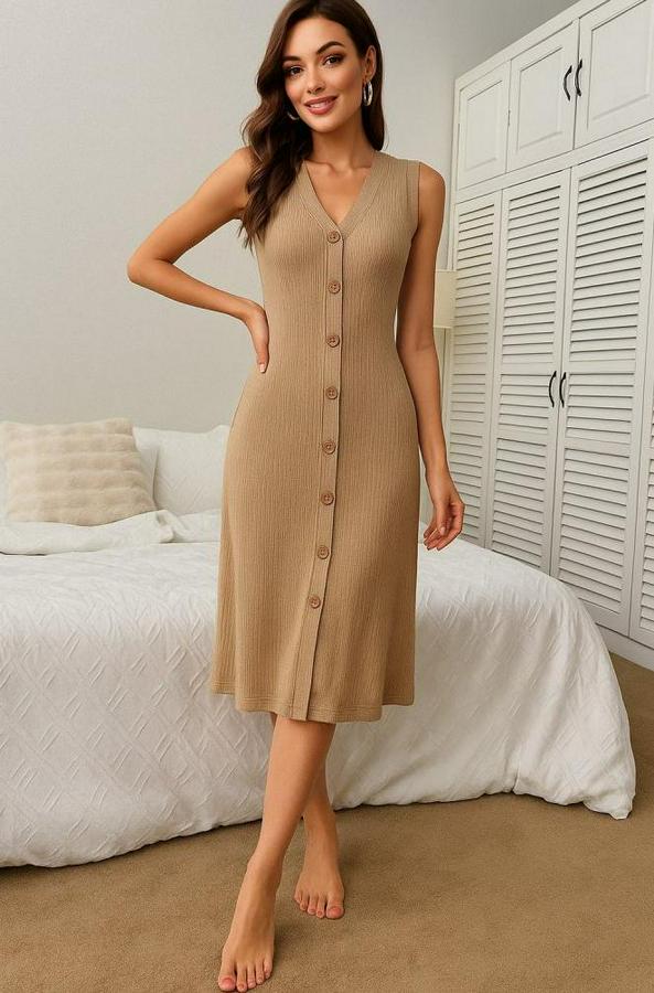 AnasayfaTüm ÜrünlerElbiseV Yakalı Önden Düğmeli Kaşkorse Elbise